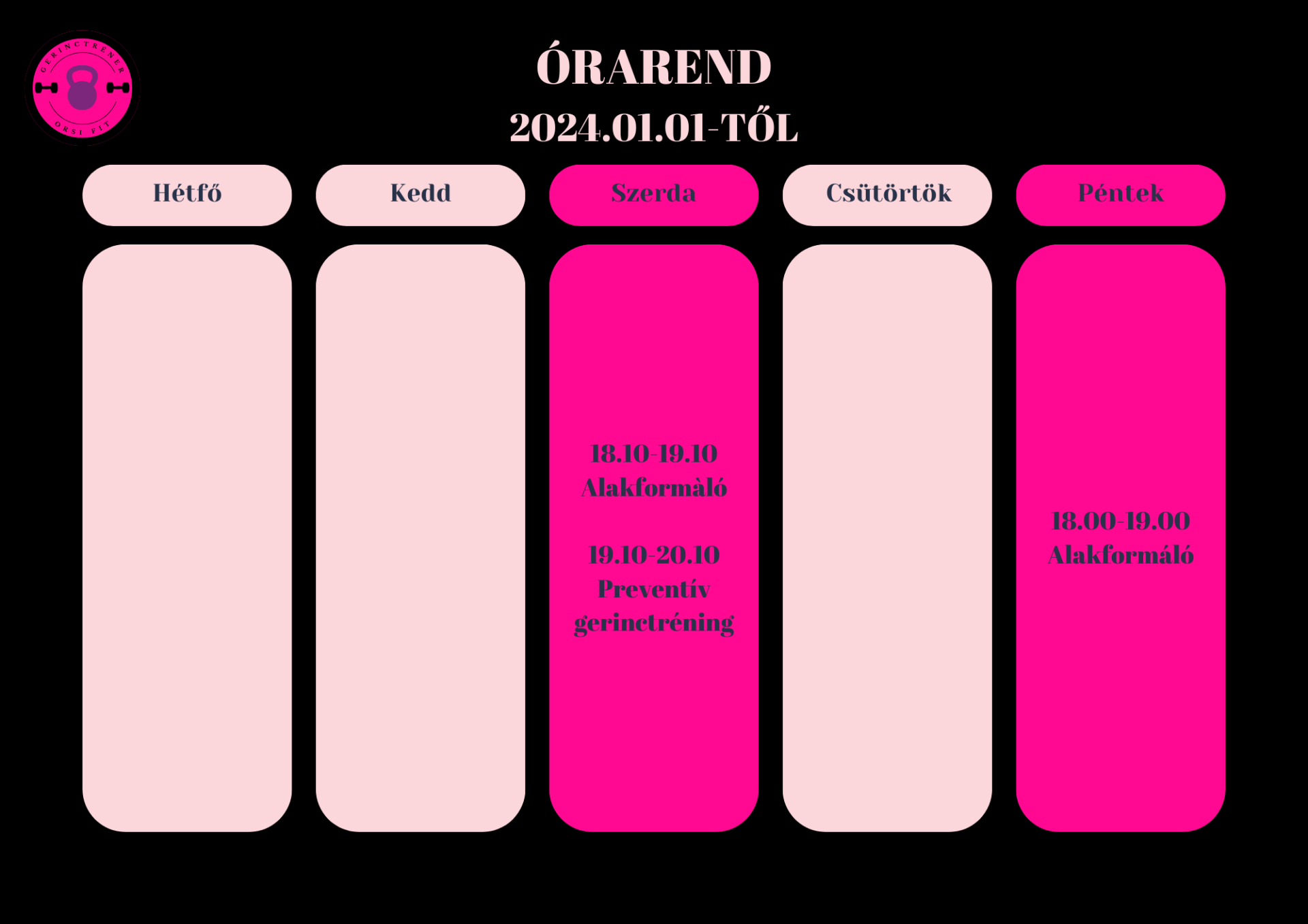 Az órákra bejelentkezni nem szükséges, szeretettel várok minden mozogni vágyót!